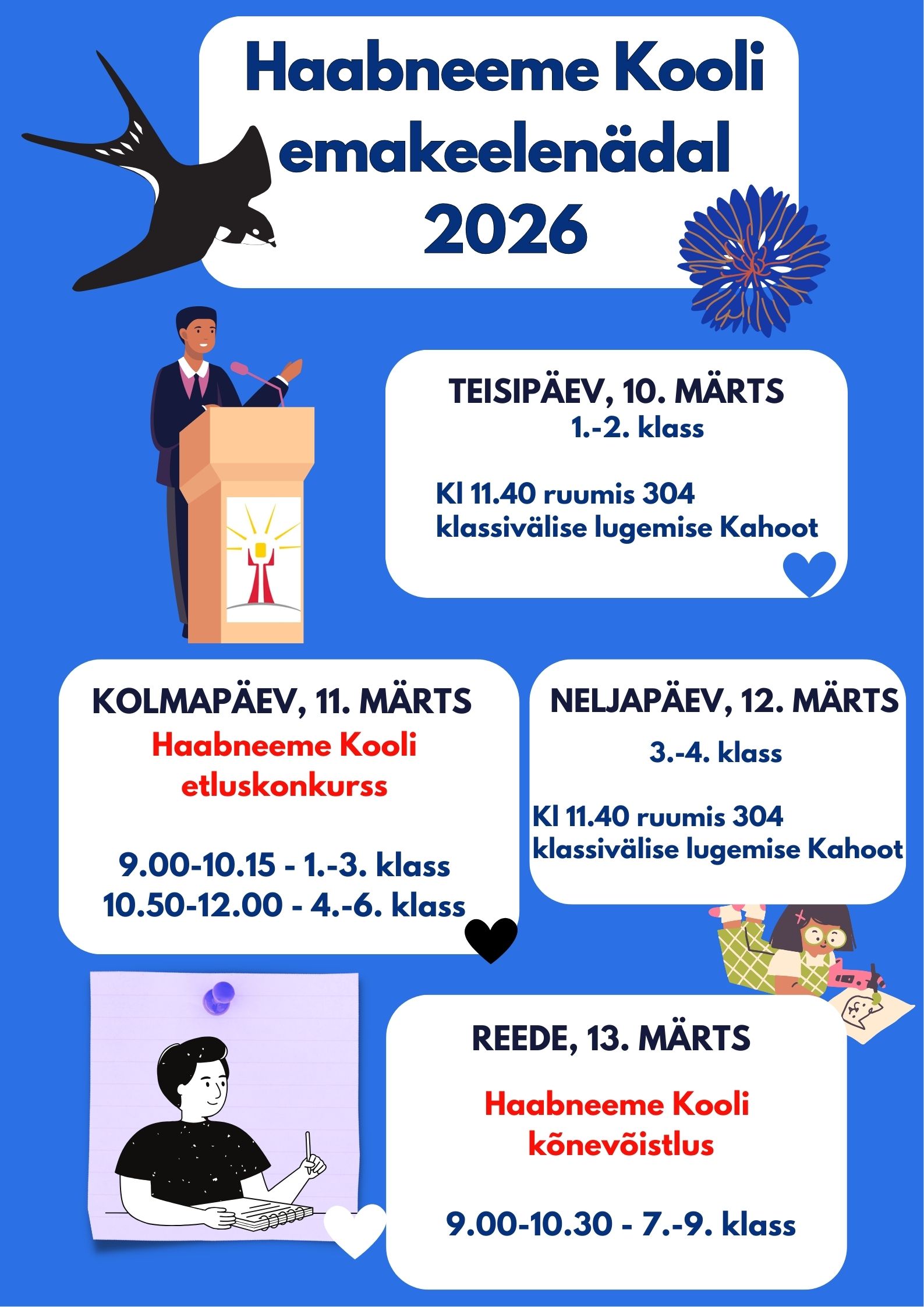 2026/2027 õppeaastal avame Haabneeme Koolis Montessori õppesuunaga 1.klassi Alates 1.märtsist kuni 15. märtsini saab esitada avaldusi Montessori õppesuunaga 1.klassi astumiseks. Lapsevanematel tuleb kõigepealt täita... Loe lähemalt